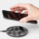 A bold, graphic pattern design in blacks and shades of gray. This subdued design includes an area to add a name for a personal wireless charger. If you need to make adjustments to the art, click on the customize it button and make changes.