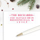 Family holiday return address self-inking stamper features your last name or family name in elegant serif type with stripe accents and modern sans serif return address text.
