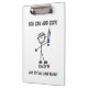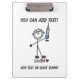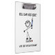 A simple stick figure doctor with hypodermic needle design clipboard with areas you can easily customize with your own text or leave blank.