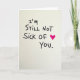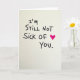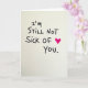 This card shows a simple photo-style still life with an off-white background and lots of open space. In the center, thick black handwriting reads, “I’m STILL NOT Sick OF ❤️ YOU,” with the words laid out in an easy, casual way. The letters look like they were written with a dark marker, a little uneven in a human, honest way. A bright fuchsia heart sits right in the middle of the phrase, standing out as the one strong pop of color. The lighting is soft and even, so the black words and the pink heart feel clear and easy to read. It comes across like a quick note left for someone you care about, which makes it feel close and real. Giving it says, “I’m still here, still choosing you,” with a little humor and a lot of warmth 🥰❤️. Share it to pass along sweet Valentine’s Day feelings with someone special.