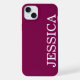 SIMPLE STYLISH CUSTOMIZED NAME MODERN DEEP RED iPhone 15 PLUS CASE ADD YOUR NAME HERE
