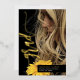 Introducing our Simple Stylish Graduation Announcement! The front features one stunning photo of the graduate, elegantly accented with modern gold script. On the reverse, two additional photos capture cherished memories, while customizable white script on a sleek black background shares all the graduation details. Make this announcement uniquely yours by personalizing the text to celebrate your achievements.
