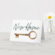 Wish family or friends good luck in their new home with this charming and simple card. The design features 'New Home' words in elegant green script, and a classic door key design. The message inside is 'Good luck in your new home', and can be customized.