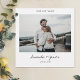 This simple, stylish modern photo wedding thank you flat card template features your names in black in a lively handwriting script beneath your photo. The date text below that is a gray tone. The default shape is a standard sharp corner style, but this design also looks great with rounded corners, so try both looks in editing mode to see which grabs you! You might choose to change the font, punctuation or color used for various text elements of this design on the front and/or back. For example, you might choose to give a certain color to your name text, or change the LOVE AND THANKS text above the photo to THANK YOU or something else. We've chosen black for the LOVE AND THANKS text, but you can change this to any color you'd like. The background on the front is set as transparent to let the color of the paper simply serve as the base tone, but you can change this look by choosing a color for the background. On the back we've chosen a background hue that isn't quite white, it's a very light gray that's mostly white called White Smoke. You can change this by picking another color in the editing tools. And we've picked the same shade of gray that we chose for the date on the front as the default color for the text on the back. We've put some sample text on the back for you to replace with your own message as you see fit, but please don't feel restricted by this. If you prefer to delete our sample text entirely and keep the back totally blank so that you can write a handwritten note on each card instead, you can do that. Or you might want to replace our text with your own message of gratitude and your own closing and then hand sign your names when you receive the cards. You can also change the font and you might change the case from the all upper case look we added. The default paper type, matte, has a soft warmth to it and resists smudging, so it's a great choice for writing your own message. You can edit this and choose semi-gloss or another paper type instead. Just please be sure in any event to delete our sample/placeholder text on both sides of the card, and please remember to replace the placeholder photo on the front with your own. Use the intuitive design tools, your favorite photo and your inspiration and make this chic wedding thank you card uniquely yours. And browse our wedding thank you collection for more simply elegant modern wedding thank you card designs!