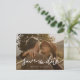 This simple, stylish modern photo wedding save the date postcard template features 'Save the Date' in a lively modern script with space for your names below it. The front text is a crisp white.