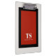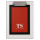 This distinctive clipboard design has classic design elements of a bold contrasting color block geometric rectangular frame in vivid red and black over an off-white background. A text template is included with monogram initials and name to personalize as you like. This look is stylish and sophisticated, yet simple and modern with gender neutral appeal. It makes a great choice for back to school, home, or office.