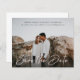 Budget Save the Date -- Modern smooth pen handwritten white script text. Completely versatile do-it-yourself style layout. The script text is flat image that cannot be edited, but it can be moved, resized, or rotated to align perfectly with your photo in advanced Customize mode. All other text elements can be fully edited. Works best for light mid-tone photo. Other styles and sizes available in store.