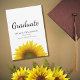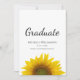 Class of 2025 graduation announcement, with a simple country sunflower design on a white background. With black typography lettering, you can add your own text. A botanical way to celebrate that special graduate.