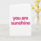 This card keeps things simple with the words “you are sunshine” as the main focus. The phrase sits centered on a plain white background, with no other pictures or objects around it. The letters are in a modern sans-serif style, all lowercase, and they look smooth and steady. The text is a strong fuchsia pink, which feels warm and happy against the white space. There are no extra details, so your eyes go straight to the message and what it means. It’s a meaningful card to give because it tells someone they brighten your days, whether that’s a partner, a close friend, or someone you’re quietly cheering for 🥰. The wording feels direct and honest, like something you’d say out loud when you really mean it ❤️. Hope it helps you share Valentine’s Day sentiments with someone special.