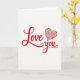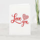 This greeting card centers on the simple message “Love you” in red, flowing lettering across a plain white background. The big “L” starts on the left and curves into the rest of the words, which sit neatly in the middle of the card. The letters look smooth and connected, like careful pen strokes, and they’re easy to read at a glance. Near the text is a red heart filled with delicate curled lines and tiny flower-like details, giving it a lacy, patterned look. With so much white space around it, the red message and heart stand out and feel intimate. It’s a meaningful card because it says what you want to say without a lot of extra, and the detailed heart adds a gentle, caring touch 🥰. It works well for romance, but it also fits a close friend or family member you truly care about ❤️. Share it to pass along your Valentine’s Day feelings in a simple, loving way.