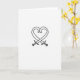 This card shows a white background with a simple black design centered on the front. Two thick, curved black lines meet and loop to form a heart, giving it a slightly rough, drawn-by-pen look. Under the heart, two curved swords cross in an X shape, with small handles and long blades that curve outward. The heart feels soft and open, while the blades add a sense of protection and seriousness, like love that’s been tested but still held close. There’s no extra scenery, so your eyes stay on the contrast between the gentle heart and the sharp edges below. I don’t see any printed words on the front, which makes the picture do all the talking and leaves room for your own note inside ❤️. It can feel meaningful for romance or close friendship, especially when you want to say, “I care about you, and I’ve got your back” 🥰. Share it to pass along your Valentine’s Day feelings in a simple, honest way.