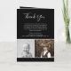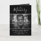 Customize this modern, simple funeral program with your own photo and text to create a special tribute to your loved one. An 'In Loving Memory' program featuring traditional black background with white typography. On the front cover a photo of your loved one, their name, dates, the memorial venue and date of the event. On the inside is an obituary and order of service; and on the back you have the option to add two further pictures, a thank you note and the venue of the wake. The text is a combination of handwritten calligraphy script and curviture serif font. All text is easily editable. If you need any help customizing this, please message me using the button below and I'll be happy to help.