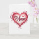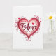 This greeting card shows a large layered heart in the center, built from many rounded rings that move from deep red around the edge to a soft pink middle. The heart looks full and slightly glowing, like it’s holding warmth inside. Around it, curling vine-like lines in dark ruby sweep outward, with lots of tiny hearts scattered across the white background like confetti. The words “Te Amo” sit across the heart in smooth, flowing lettering, colored a deep burgundy that stands out clearly. There’s even a tiny heart tucked inside the “A” of “Amo,” which feels like a sweet little secret detail. The simple white background keeps the focus on the message and makes the reds and pinks feel even more loving ❤️. It’s meaningful because it says “I love you” in a direct, gentle way, whether it’s for a partner or someone close to you 🥰. Hope it helps you share your Valentine’s Day feelings in a kind, honest way.