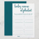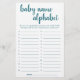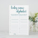 "ABC Race Baby Name Game" Simple baby shower or gender reveal party alphabet race game card featuring a fun, casual hand-lettered script. The classic design includes a modern handlettered quote typography overlay. For other colors or matching products, please visit the JustFharryn Zazzle store, or contact the designer, c/o Fharryn@yahoo.com All rights reserved. #bohochic #zazzlemade