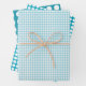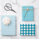This simple teal blue and white polka dots pattern has three sheets of a classic polka dot design with different color combinations. Use them to wrap coordinating gift boxes for a baby shower, birthday, or any other event where you want a clean and simple look.