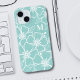 Simple Teal Blue Floral Initial Monogram iPhone 15 Case. A fun but elegant phone case with girly teal and white flower outlines. A playful flower pattern frames a chic serif font simple initial monogram. The fun part is you can change out ALL of the colors!! You can not only change the background colors and font, but you can change the lines for the flowers as well.