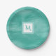 Simple Teal Green Subtle Marble Modern Monogram Paper Plates