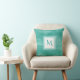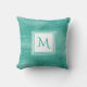 Simple Teal Green Subtle Marble Modern Monogram Throw Pillow