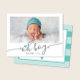 Simple Teal Heart Boy Baby Shower Photo Thank You Card