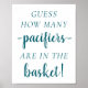 Counting Game Table Signage: Simple "Guess how many" (pacifiers, candies, socks, etc) baby shower or gender reveal party table sign featuring a fun, casual hand-lettered script. The classic design includes a modern handlettered quote typography overlay. For other colors or matching products, please visit the JustFharryn Zazzle store, or contact the designer, c/o Fharryn@yahoo.com All rights reserved. #bohochic #zazzlemade