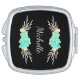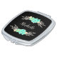 Compact mirror featuring a custom monogram and teal and silver flowers