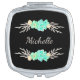 Simple Teal & Silver Monogrammed Name Compact Mirror