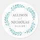 Simple Teal Watercolor Botanical Vine Wedding Classic Round Sticker
