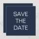Simple Text Dark Navy or any color Wedding Square Save the Date. The font color and type can be changed via the edit menu. You can also change text and background colors on either side if you wish.