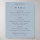 Simple Text Dusty Blue Wedding Menu. You can also change the font style and colors and the background colors if you wish via the Edit Further option.