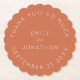Simple Text Terracotta Names Date Custom Wedding Paper Coaster