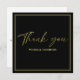 Express your gratitude with this thank you card featuring a simple, minimalist design in timeless black and gold. The elegant calligraphy script adds a touch of sophistication, while the clean layout reflects a stylish, classic style. Personalize it with your name and custom message to make each note truly special. Perfect for those who appreciate minimal elegance with a refined touch.