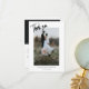 Elegant wedding 'thank you'. This Template is a 2-sided card featuring a hand lettered typography script text. This script and white space gives a simple and minimalistic feel. Customize this card product by inserting your own wedding photo's on the front and back, changing the names and date, and editing the message on the back of the card.