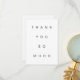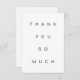 Large thank you so much flat card. Simple black and white typography in large, thin font. Pre-written message on the reverse side that can be personalized. Kimberly Brett.