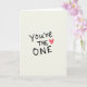 This greeting card centers on the message “You’re THE ONE” in black, written to look like natural handwriting with slightly thicker and thinner strokes. The words sit in the middle of a warm off-white background with a light grainy texture. “You’re” curves gently into “THE,” which is in all caps and stands out, and then your eye lands on the bigger “ONE.” Just after the message, a small bubblegum-pink heart takes the place of a dot, adding a sweet little pause ❤️. The simple layout makes the words feel direct and honest, like something you’d write in a note to someone you care about. It works well for romance, but it can also fit a close friendship when you want to say, “I choose you.” Share it to pass along Valentine’s Day feelings in a warm, simple way 🥰.