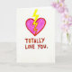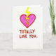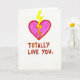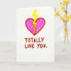 This card shows a big magenta heart near the top, outlined in a darker red, set on a white background. A jagged yellow lightning bolt cuts straight through the heart, giving it an intense, “hit-you-all-at-once” feeling. The drawing looks like it was made with markers, with slightly uneven lines that make it feel honest and direct. Under the heart, the words “TOTALLY LOVE YOU” are written in all caps in a reddish-orange, with a loose, hand-drawn letter style. The text sits centered toward the bottom, like it’s saying the quiet part out loud. It’s a sweet choice for someone you care about because it feels like real, unfiltered affection rather than something too polished 🥰. Whether it’s for a partner or a close friend, it says your feelings are strong and real ❤️.