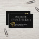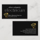 An all black cover features a translucent "electrician" signage near the center of the card. At the top lies your prestigious name with a gold bulb home circuit logo you can use at the base alongside the business name and contact details.
