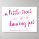 Modern flourish horizontal "a little treat for your dancing feet" shower, party, or reception favor table signage featuring a fun, casual hand-lettered script. The classic design includes a handlettered quote typography overlay. The lovely font with a customizable background color makes it easy to fit any theme. For other colors or matching products, please visit the JustFharryn Zazzle store. All rights reserved. #zazzlemade