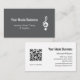 Simple music lessons gray business card, with a white treble clef symbol a black background. With customizable lettering, you customize with your own information. You also add your website to allow for connection with a QR code. Great for promoting your music lessons or performing business.