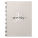 Trending toward simple styling with designer appeal, this modern notebook design features your name spelled out in a handwritten calligraphy script in black with leading and trailing tails to add a stylish look. Your first and last initials are presented in a modern industrial serif type face in white beneath the calligraphy over a neutral beige background. The result is stylishly you! PLEASE NOTE: When personalizing your name on this item, be sure to leave the box symbols before and after your name. This is what causes the lovely tails to print before and after your name.