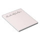 Trendy, simple, modern, minimalist notepad in pastel pink, with elegant handwritten font in black.