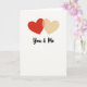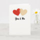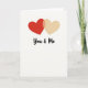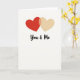 This card shows two overlapping hearts near the upper center of a warm ivory background. The left heart is a rich red, and the right heart is a soft creamy yellow, so they feel like passion and comfort side by side. Where they overlap, the color shifts into a gentle amber tone, like a small reminder of what you create together. Below the hearts, the words “You & Me” appear in a loose brush-style lettering in a dark tone, placed neatly under the design. The wide open space around everything keeps your attention on the hearts and the message without distractions. It feels meaningful because it’s simple, honest, and easy to connect with, whether you’re giving it to a partner or someone you care about 🥰❤️. It’s a quiet way to say you’re in this together, perfect for sharing Valentine’s Day sentiments.