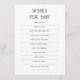 Simple Typography Wishes for Baby Shower card. Available digitally and printed. A game for your guests at your baby shower where they write their wishes for your baby and a keepsake for your child in years to come. You can easily personalise all the text to your own requirements.