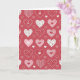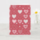 The front design shows a bright red background covered with many hearts in red, white, and soft pink. Some hearts are solid red with a thin white outline and a smaller pink heart inside. Others are white hearts filled with red polka dots or sprinkled with tiny red hearts. A few hearts have white outlines with red stripes running across them, and some of those hold a small red heart in the middle. Smaller heart outlines are scattered in the spaces between the larger shapes, so the whole card feels full and cozy. There isn’t any text on the card, which lets the heart pattern do all the talking 🥰. It feels meaningful to give because it looks like a simple reminder that love and care can show up in many little ways, all at once ❤️.