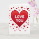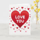 This greeting card features a large, glossy red heart in the center, shaded from deep burgundy at the edges to brighter red toward the middle. Inside the heart, the words “LOVE YOU” appear in white, simple sans-serif letters, centered and easy to read. Around the main heart, several smaller hearts float across the card, scattered like confetti. These little hearts come in deep reds and soft pinks, and their different sizes make the layout feel light and lively. The background is plain white, which makes the reds and pinks stand out and keeps all the focus on the message. It feels meaningful to give because it says what you want to say right away, without needing a lot of extra words 🥰. Whether it’s for a partner or someone you care about, it’s a sweet way to show affection ❤️. Hope it helps you share your Valentine’s Day feelings with someone special.