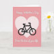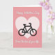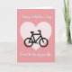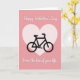 This greeting card shows a large light blush pink heart centered on a slightly deeper rose pink background. Inside the heart, there’s a simple black silhouette of a bicycle, shown in profile with two clear wheels and a calm, balanced look. The words “Happy Valentine’s Day” appear above the heart in small white cursive-style lettering, spaced lightly so it feels airy. Below the heart, “From the love of your life.” is written in matching white cursive-style text, placed near the bottom and easy to spot. The soft pink shades and the quiet bike image make the whole scene feel gentle and close, like a private note between two people. Giving it can feel meaningful because the bicycle hints at moving forward together and sharing everyday moments, not just grand romance 🥰. It works just as well for a partner or someone you care about deeply, because it keeps the message simple and sincere ❤️.