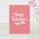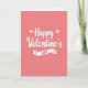 This greeting card features the words “Happy Valentine’s Day” centered on a soft salmon-pink background. “Happy Valentine’s” appears in flowing white lettering across the top and middle, with smooth curves that feel gentle and romantic. Two small white hearts sit near the wording, adding a sweet touch without crowding the space. Below, a white ribbon banner stretches across the lower area, and the word “DAY” is printed inside it in deep red, using simple, straight letters. Light shadows under the white letters and banner make the text look slightly raised, like it’s floating just above the background. The overall look is calm and affectionate, making it easy to give to a partner, close friend, or anyone you care about 🥰. It feels meaningful because it says exactly what you want to say, in a quiet, caring way ❤️. Hope it helps you share your Valentine’s Day sentiments.