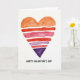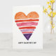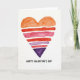 This greeting card shows a large watercolor heart centered on a bright white background, painted in loose horizontal bands. The top of the heart is warm orange with softly rounded edges, then it shifts into deep red and gentle pink as the color moves downward. Near the point, the shades turn to lavender and then a dark purple, giving the bottom a sharp, triangular finish. You can see watery paint bleeds and uneven patches where the color pools, which makes it feel human and tender. Below the heart, the words “HAPPY VALENTINE’S DAY” are printed in simple, all-capital letters in a dark tone, placed near the bottom center. It feels meaningful because the heart looks like it was painted with care, like someone took a moment to say “I’m thinking of you” 🥰❤️. It’s an easy way to share Valentine’s Day sentiments with someone you love or a good friend.