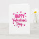 This greeting card features the message “Happy Valentine’s Day” centered on a white background. “HAPPY” is written in all-caps, thick sans-serif letters, and it sits above “Valentine’s Day,” which is in a flowing cursive style. The words are a bright fuchsia-pink, with soft shading that gives the letters a slightly raised look. Around the text, fuchsia-pink hearts are scattered in different sizes, like they’re floating outward from the middle. The hearts also have gentle shading, which makes them feel a little rounded and soft. The overall look is simple and sweet, and it feels like an easy way to say you care without needing a lot of extra words 🥰. It’s a meaningful choice for a partner, friend, or anyone you want to remind that they matter, so you can share Valentine’s Day sentiments ❤️.