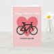 This Valentine's Day card shows a black bicycle silhouette centered on a large rose-pink heart, set against a soft pastel pink background. The bike looks simple and calm, like it’s ready for a quiet ride with someone you care about. A neat detail is in the wheels: each one is split so part is white and part blends into the pink heart, which makes the bike feel connected to the heart behind it. At the top, the words “Happy Valentine’s Day” appear in flowing black cursive-style lettering. Near the bottom, “From the love of your life” is written in the same black cursive-style lettering, placed beneath the heart. The pink-on-pink setting feels gentle and romantic without trying too hard, and the bicycle adds a sweet idea of sharing life side by side 🥰❤️. It’s a meaningful way to share Valentine’s Day sentiments with someone special.