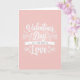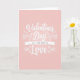 This card shows a soft pink background that fades from a light blush in the middle to a deeper rose near the edges. The main focus is the white lettering that reads “Valentine’s Day ALL YOU NEED IS Love,” centered on the front. “Valentine’s Day” and “Love” are written in smooth, flowing letters with curving strokes, and they stand out the most. Between them, “ALL YOU NEED IS” sits on a simple white ribbon, written in smaller, plain letters. Tiny white hearts and gentle swirls are scattered around the words, adding a sweet, romantic touch without feeling busy. The overall look feels calm and caring, like a quiet reminder that love matters most 🥰. It’s a meaningful card to give to a partner or close friend when you want to say “I’m here, and you matter” ❤️, and it’s a friendly way to share Valentine’s Day.